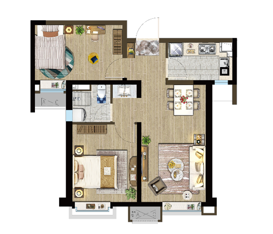 户型设计上,从空间功能的使用需求,到人体工程学的尺度研究。力求做到户户空间舒适、配置明厨明卫,营造适宜的居住空间。