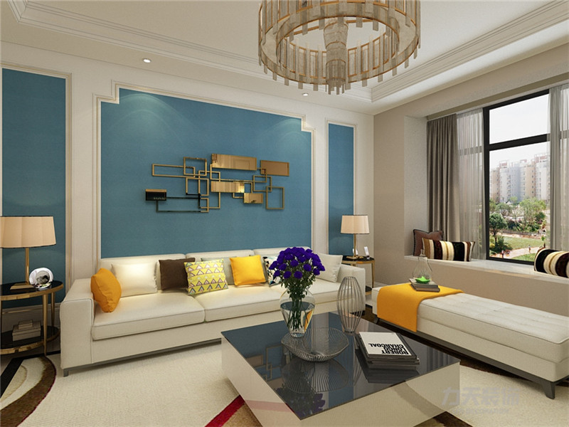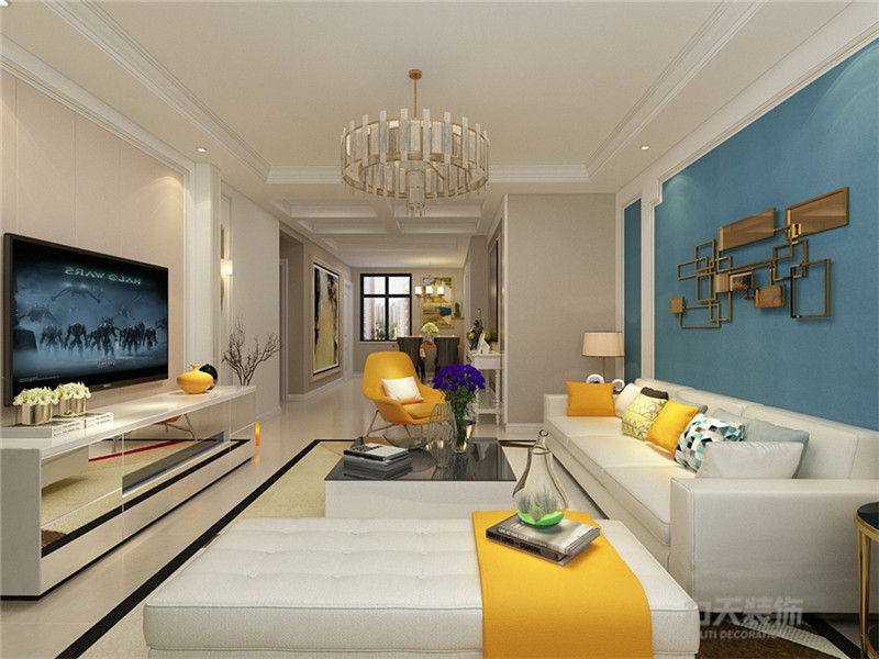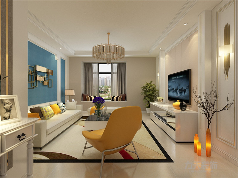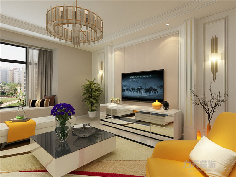 客厅为了达到整体的效果,地面和玄关一样做了波打线,波打线的材质颜色和过门石的材质都要一样,这样整体的效果更突出。客厅的顶面是石膏线圈边,这样整个房间就不会显得那么压抑。