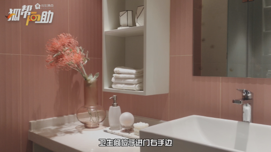 卫生间位于进门右手边,功能分区合理,使用方便,功能性与美感兼具。除此之外,卫生间还预留了智能马桶电源接口。