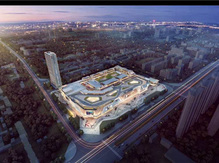 项目占地约505亩,建筑面积约93万方,涵盖了现代体验式综合商业中心、街区商业、SOHO公寓、高层住宅、临街商业等多种业态,构成了集消费、社交、休闲、居住、康养于一体全天候城市空间,致力于打造一座宜居、乐居、享居的特色商业与绿色人居共融的“全业态复合新城”。
