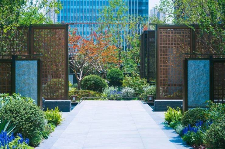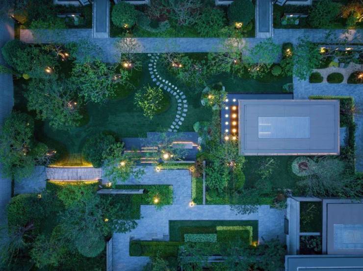 荷雨瑧悦以金陵第一园"瞻园"为蓝本打造的"一园三堂"景观体系,让乌桕、红枫等名贵树种与飞云跌瀑相映成趣。