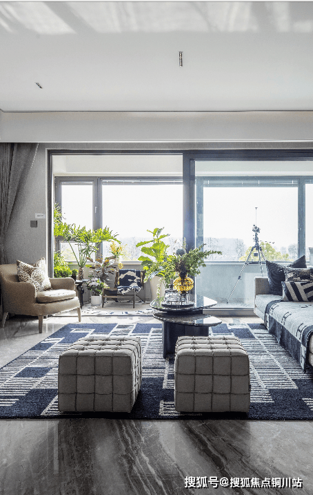 从立面、园林到室内,江心印园皆展现超预期质感。质感外立面在阳光下熠熠生辉,极具辨识度。铝板+石材+玻璃幕墙,辅以高窗墙比,呈现出一种独特的框镜设计风格,奢雅的灰调搭配大面积玻璃,辉映建筑灵动的艺术美感。