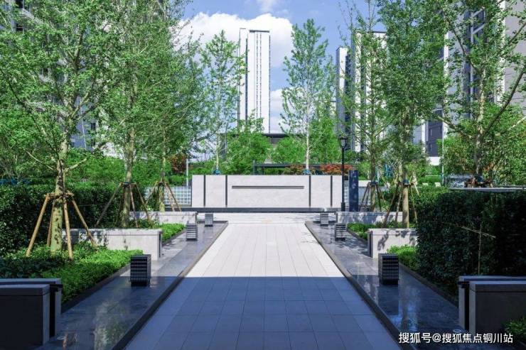 入口处设置的归家通道仪式感满满,两侧小型喷泉与绿植相得益彰。