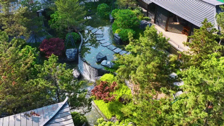 如果说外部环境是天赋的馈赠,那长江中心内部约4.3万方的园林,则是匠心雕琢的东方诗意。项目将长江元素与宋式美学,融合九码头历史文化,以“一轴五进十二景”的礼序布局,打造滨江首个宋式园林,将宋式传统美学融入现代生活。