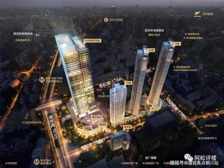 项目由2栋54层超高层住宅、1栋36层高层住宅、1栋39层办公楼、1栋18层综合楼、1栋3层室外商业街组成。