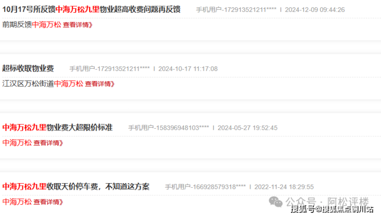 在武汉城市留言板上搜索中海万松九里,关于小区内部的投诉在于停车费和物业费较高,几乎没有关于楼盘自身质量的相关投诉,侧面反应出项目整体交付表现还不错。