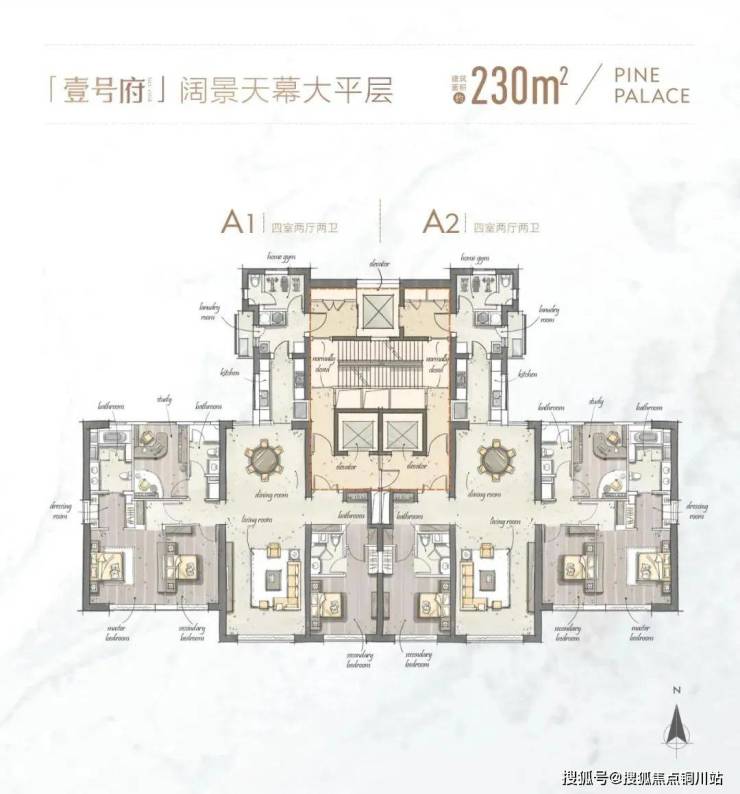 该项目只有一种建面约230㎡的户型,3梯2户结构。