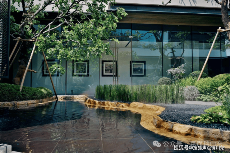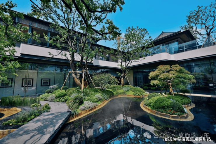 地面玄武黑石材与山西黑流水石相映,墙面古铜花纹经人工精敲细琢,尽藏中建匠心。多节点观景廊道曲折通幽,行走间春有繁花、夏有浓荫、秋有红叶、冬有绿意,让自然成为生活的日常背景。