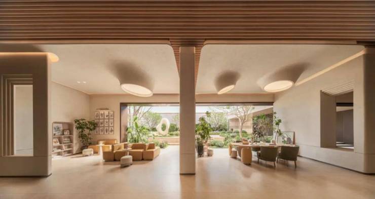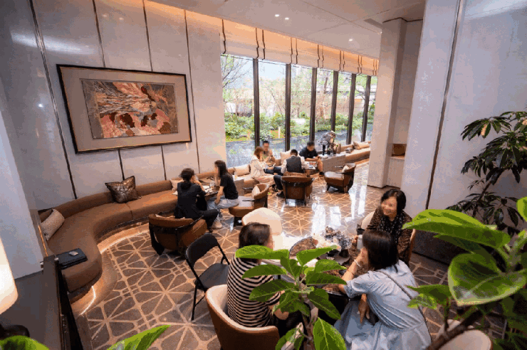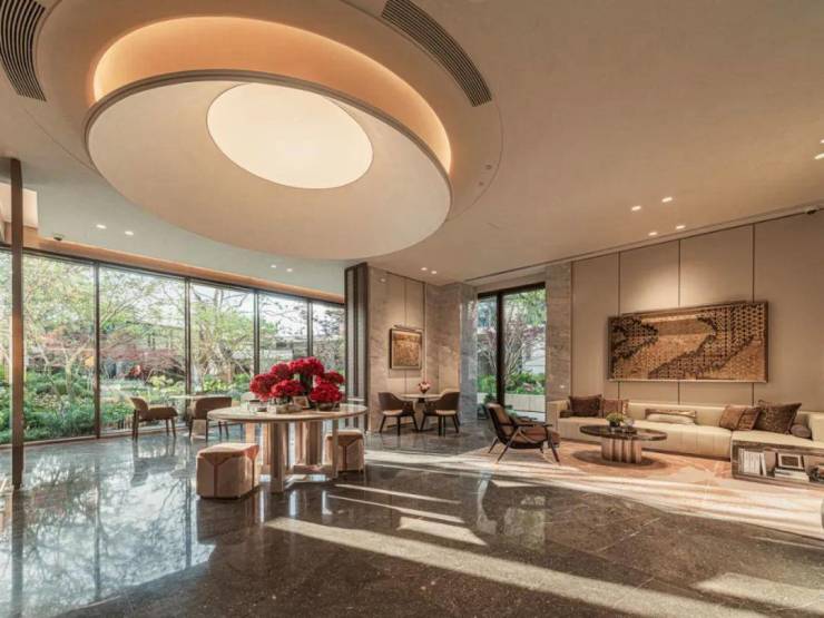 另一个是城市会客厅,专为业主交流准备,配备有行政酒廊,社区中央景观通过大面玻璃延伸室内,未来将作为会所的第二空间。