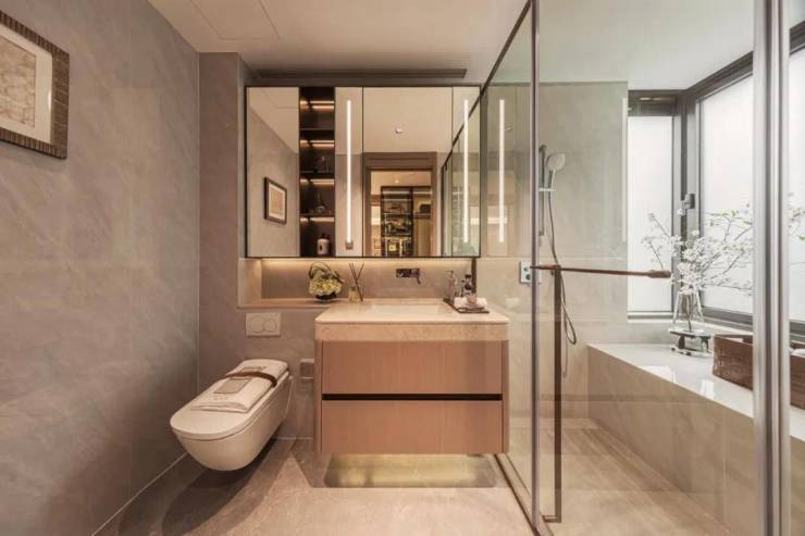 另外,淋浴房设计壁龛收纳 ,并使用钢化玻璃隔断,非常贴心!