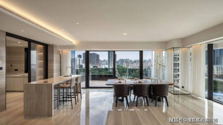 来到室内,可以说直接被这气场震撼:约80米超大餐客厅、16米L型全景大落地窗、约30㎡星空露台、270°巨幕视野……