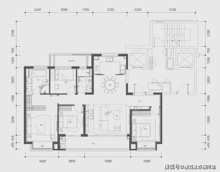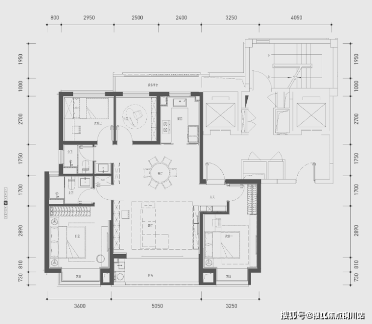 再来看148㎡的户型,体验感几乎与180㎡的大平层打平,断层领先。