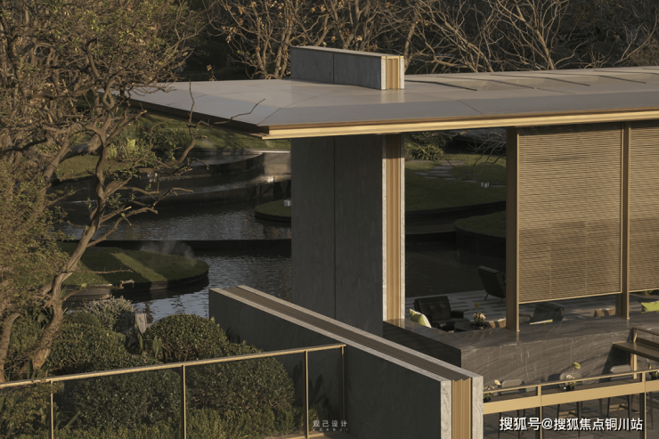 下沉庭院与二层无界艺术水院相互渗透,以温暖的格栅色彩,承载日常的生活尊贵感与暖意。光影透过格栅,在生活场景里描绘诗意画卷。