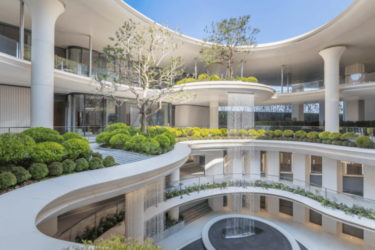 4.车库-华中首个生机之环体系:生机之环包含四层通高的森境谷庭,采光通廊、光厅等,通过汽车坡道,感受螺旋的艺术阶梯、流水、蓝天白云、绿意树影、微风,将自然与人的生机带入其中,使地下空间地上化、艺术馆化,打造一种全新体验。