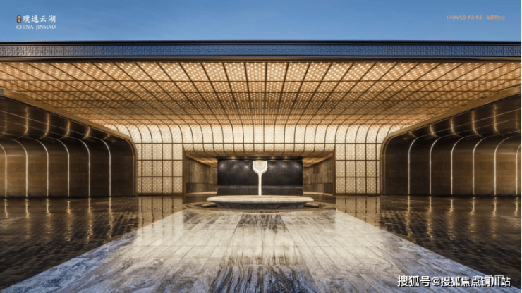 帝王以金昭礼序,以璞彰权柄; 建筑取青铜古韵,琢玉显尊贵。金茂璞逸云湖以「金镶玉带」的立面叙事串联中原文明千年脉络,建筑立面取色青铜鼎的斑驳古金,露台玻璃下方镶嵌绿石玉带,重现东方文明中“金玉相生”的珍贵意象。