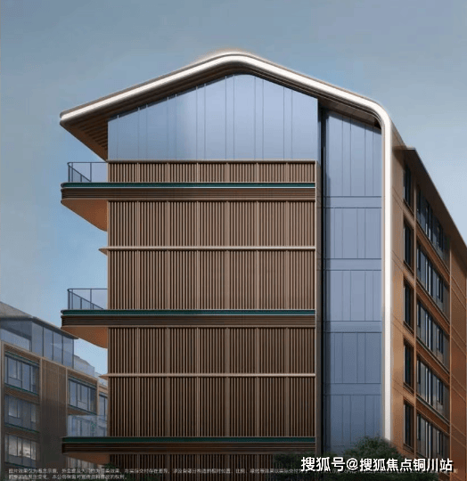 约150米的超长城市界面,悬山冠顶屋顶、普拉达墨绿奢石+金甲铝板的“金镶玉”立面、北龙湖首个陶板山墙。