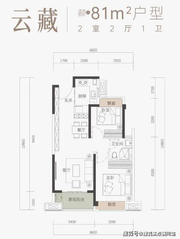 建面约81㎡两房两厅产品是一个稀缺户型。