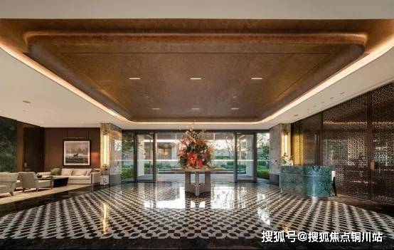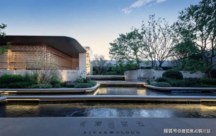 观潮望云大门宽约22米、高约8米,由铝板、石材和玻璃幕墙打造,以“三亚艾迪逊酒店”为设计灵感,辅之于灵感源自上海宝格丽酒店环岛落客区,外加泛会所式归家大堂,给居者带来全新的“度假式居住”体验。