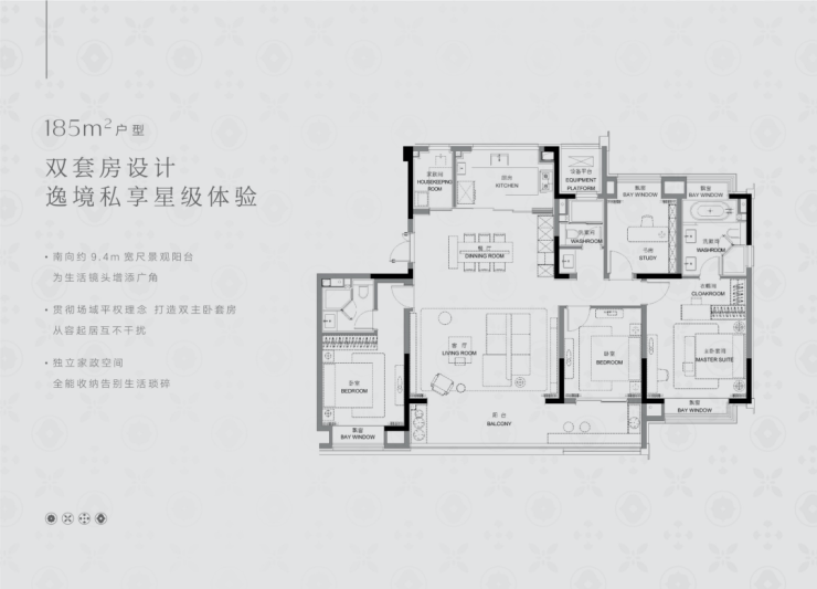 02、相同功能上,项目相比同类四房大平层,做到了宽屏大开间、全明采光、多套房配置,改善的排面和尊崇感尽显。