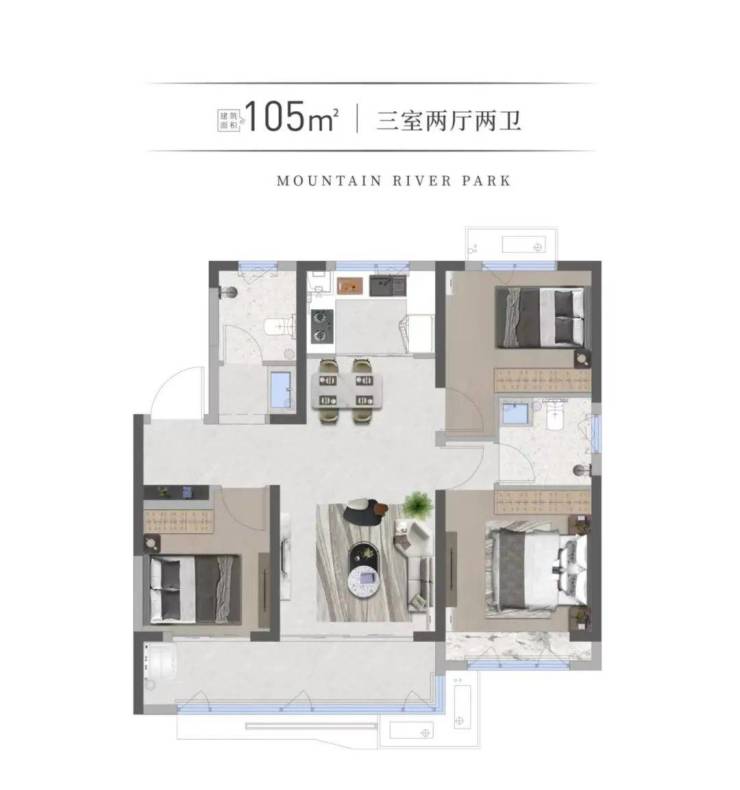 户型则采用了市面上流行的明星设计,南北通透,动静合理,观景效果极佳。