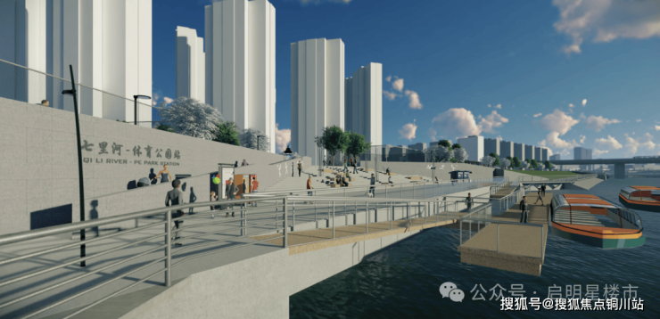 据了解,七里河滨水景观带全长约4.5公里,最新规划显示,将打造新景观绿带、六个大型观光码头、滨河商业区、文化地标等场景。