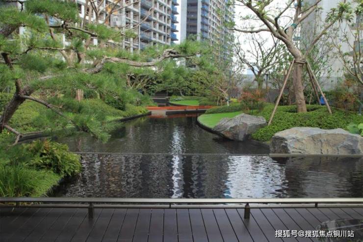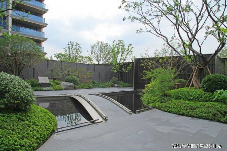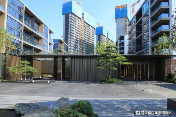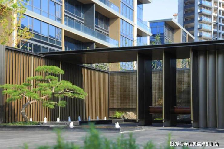 景观施工整体铺装轴线与门楼、汽车坡道精装共同放线确认,施工过程中统一按照确认轴线放线施工,防止施工过程中方向偏位,线接口出现偏差。入口映入眼帘的是一高一矮两棵造型飘逸进口黑松,松与水景相映成趣,穿行而入,围合空间内山石小景与精致的格栅背景墙完美融合,开启愉悦的归家之旅。