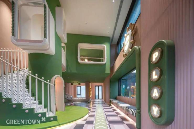 广州玉海棠项目充分利用3层架空层空间完善园区公区配套功能,1-2层打造约8米高的儿童垂直魔方,构筑童趣乐园。