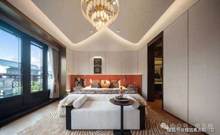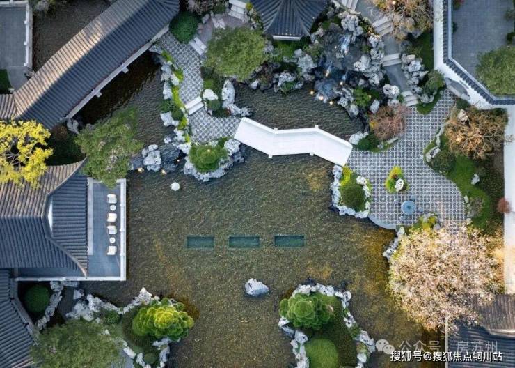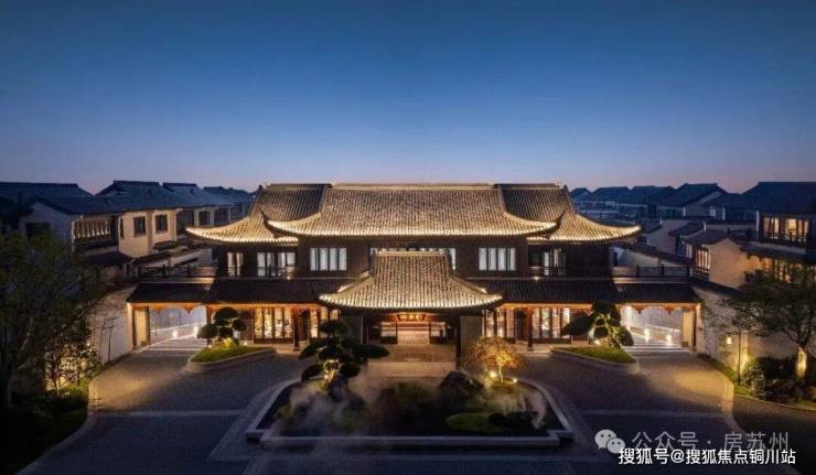例如,近40米的恢弘门庭,承袭传统歇山顶形制,飞檐翘角,气度庄重。门前名贵罗汉松苍劲挺拔,结合湖石 “一池三山” 经典造景,归家仪式感与东方礼制一气呵成。