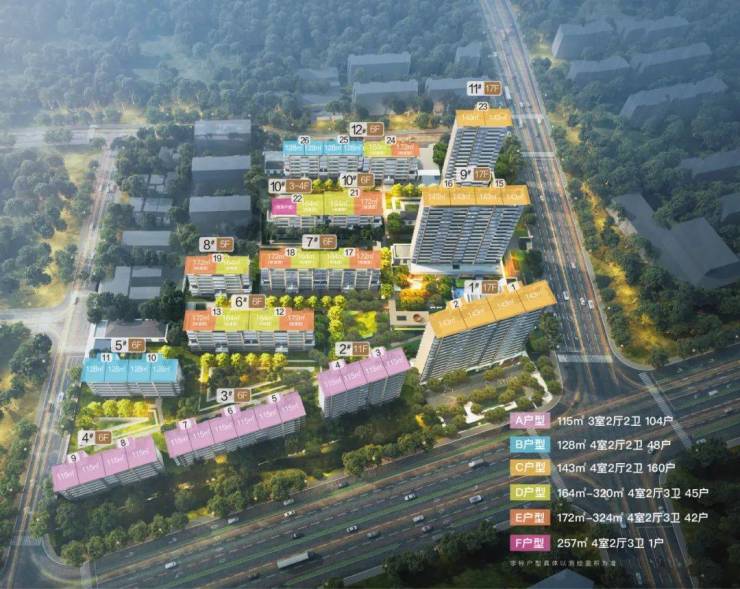 项目规划:占地面积约 3.6 万平方米,总建面约 8.28 万平方米,容积率仅约 1.6,共规划 8 栋 4-6F 洋房、1 栋 11F 洋房住宅以及 3 栋 17F 小高层住宅,共有 5 种主力户型,仅 400 套房源。