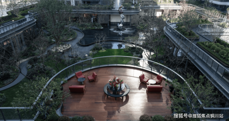 同时,项目以“垂直园林”理念设计双层连廊,打通楼栋间的互通屏障,让业主雨天也能实现无障碍社交,实现自然景观、空间与人的和谐互动。