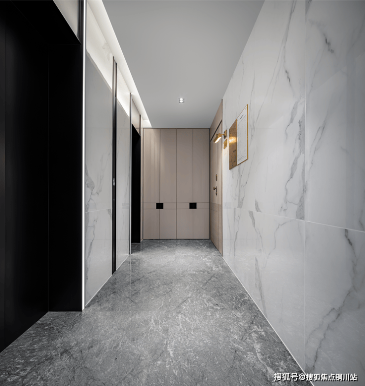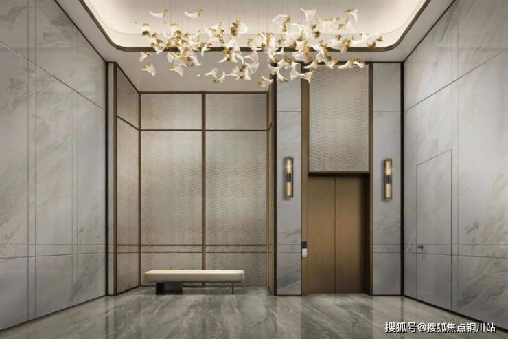宸嘉100的住宅是精装交付,示范区、公区、还有样板间都已经做好,电梯厅完全就是酒店式的入户大堂,两梯两户,三梯两户,主佣分离,更有私密性。