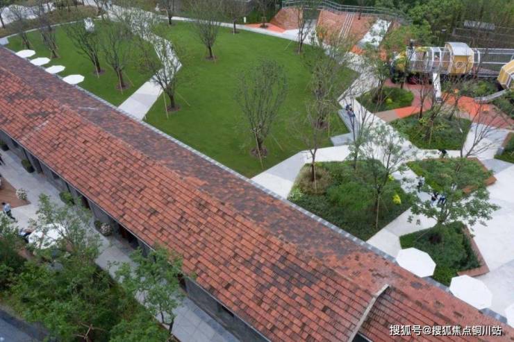张唐最终决定用一个蛋壳形的场地把这些功能圈进来,核心就是那排文保建筑,从空中俯瞰形似停靠站台的列车,而整个蛋壳公园就是一个大型的月台,再在里面填充上天空之境、时光火车、攀爬月台等车站元素,既有文化传承,又不吝创新。