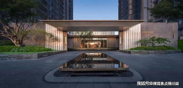 从大门开始,就是由3层叠水+3重高定植被装饰下的约40米宽的景观轴线,这个实景,几乎是1:1还原了效果图,肉眼看,比效果图更惊艳!