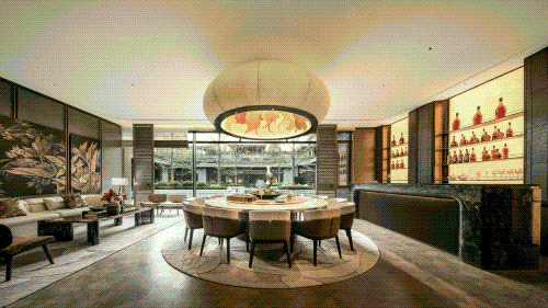 项目会所面积近3000㎡,打造了行政酒廊、浮岛花园、恒温泳池、瑜伽室、健身房、红酒雪茄吧、英式下午茶厅、法式下午茶厅、私宴厅以及管家式棋牌室等11大功能区域。