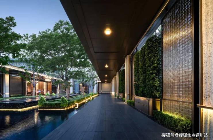 一进门的这个「礼序水院」,中间灵动的水台跳泉和修剪齐整的绿植花草,过滤了街道上的喧嚣,深度切换你的归家情绪。8棵香樟树分列两侧,枝繁叶茂,构成归家动线的仪式感。