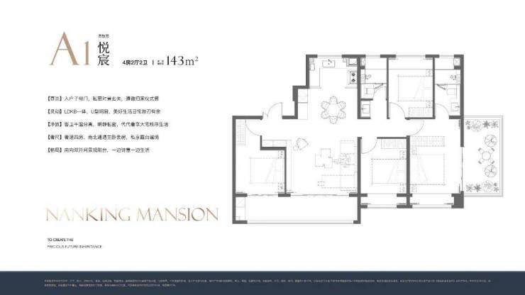 建面约143㎡四房两厅两卫, 也有4个户型