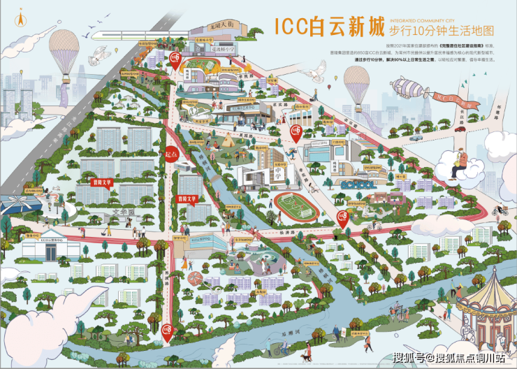 ICC白云新城社区规划,远超国家完整居住社区标准。晋陵集团对此进行超前系统性规划,进行生活体系集成。
