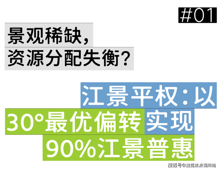 两者互相作用,使享有江景的户数比例由常规的头排共约45%提升至整个项目的90%套数,从而打破头排建筑对于景观的资源垄断,实现江景平权,让“山水入室”成为社区标配,最大化提升整体居住价值。
