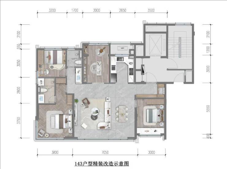 整个地块呈现凹字形,一共四楼,3栋17层小高,1栋5-7层的洋房,两种户型,143和167平。