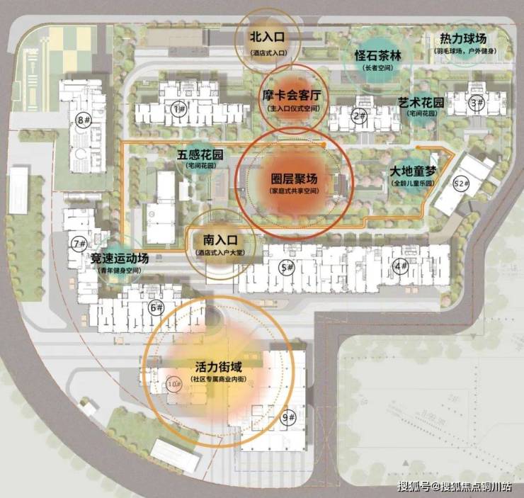 项目景观以酒店式的灵感启发,将无雨落客、大堂社交、跨界融合、多元渗透、场景营销等思维引入,构建“一条社区专属的活力街区”、一条串联“森活”的健康环道、两大酒店式尊享入口、两大圈层共享都市会客厅、六大全龄生活美学花园。