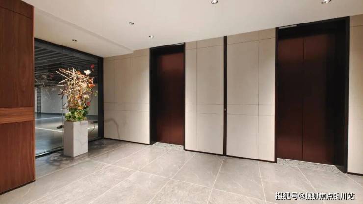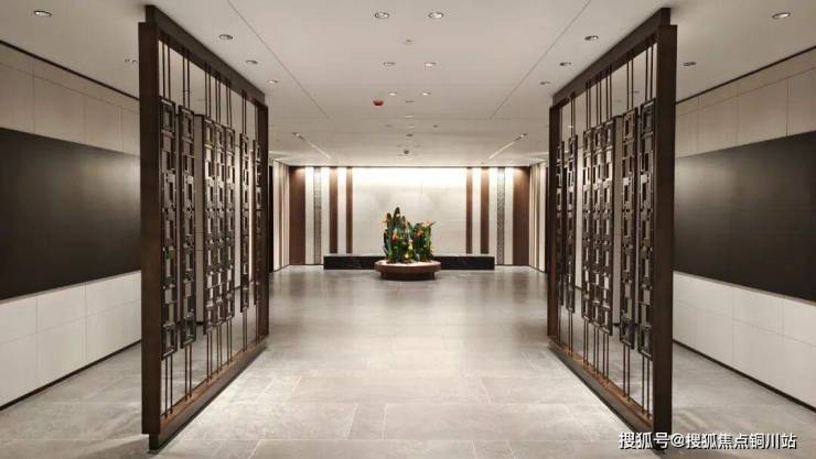 进入地下大堂落客区,内部岩板、木饰面的拼接组合,有着星级酒店般的呈现。