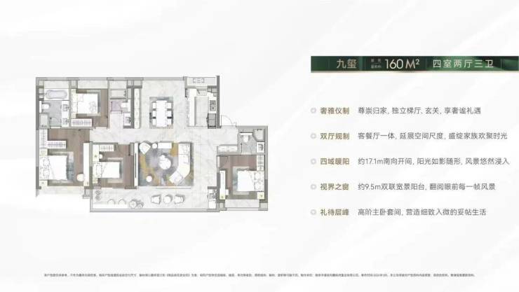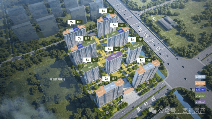 在户型打造方面,中建·源上九里精心调研,充分尊重买房人的改善需求,规划了9栋17-18F小高层住宅,户型建面约116-160㎡,共有530户低密社区。
