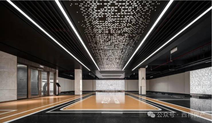 星空顶车库更是让人眼前一亮。中建·源上九里星空顶车库采用柔化光线与深灰金刚砂地坪,将归家动线升华为星际穿越般的仪式感。