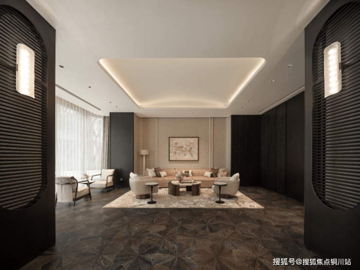 约1000㎡泛会所利用楼栋架空层打造开放式邻里空间。设置有“老钱风”的家庭娱乐休闲吧、行政酒廊、家庭艺术会客厅等,平衡商务与休闲。