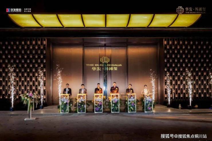 华发外滩玺项目呈现的是鎏金级归家仪式:60米宽超级大门取意安达仕酒店对称仪式感,气势恢弘。
