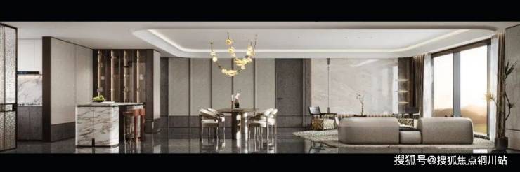Ultra版环幕客厅,面向江景与中庭处,采用无界转角270度全景舱设计,拥有极致景观视野。