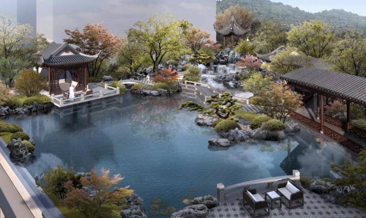 园林景观:内部打造约 1500㎡的苏式园林景观,亭台楼阁、碧水石桥错落有致,与建筑相得益彰,营造出静谧、诗意的居住氛围