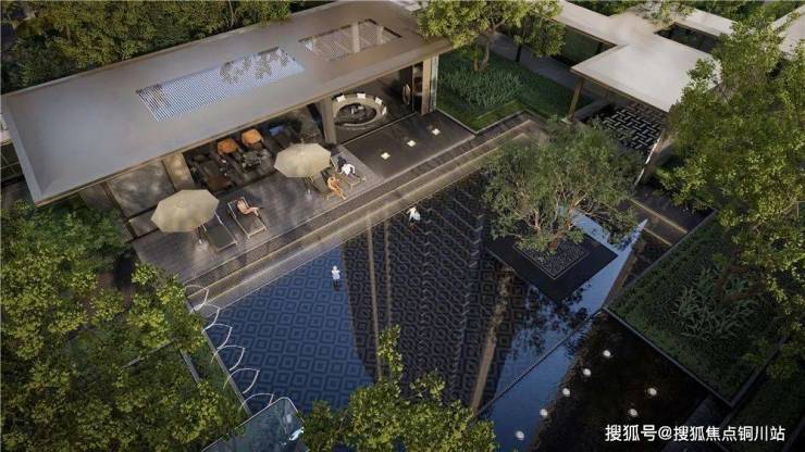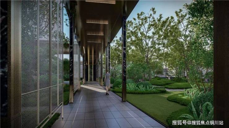 进入这座“酒店”后,呈现在眼前的就是风雨连廊,风雨连廊串连起了整个小区各个楼栋,这可不仅只是为了帮业主遮阳挡雨,而是借用了度假型奢适酒店的理念,将园林与建筑完美融合,让空间的功能性与体感尽可能达到平衡。
