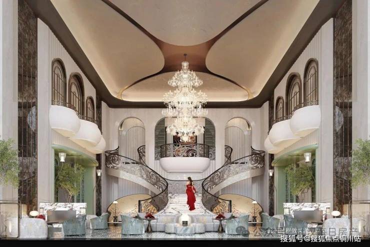 复刻厦门标杆项目建发・宸启瑞湖的海派美学基因:花瓣式艺术吊灯如飘落花雨点缀空间,南洋菱形釉彩地砖映出光影流转,Art Deco 线条与珐琅彩玻璃交相辉映,螺旋楼梯如当代雕塑般盘旋而上 —— 每一处细节,都是对卓越品位的精准表达。