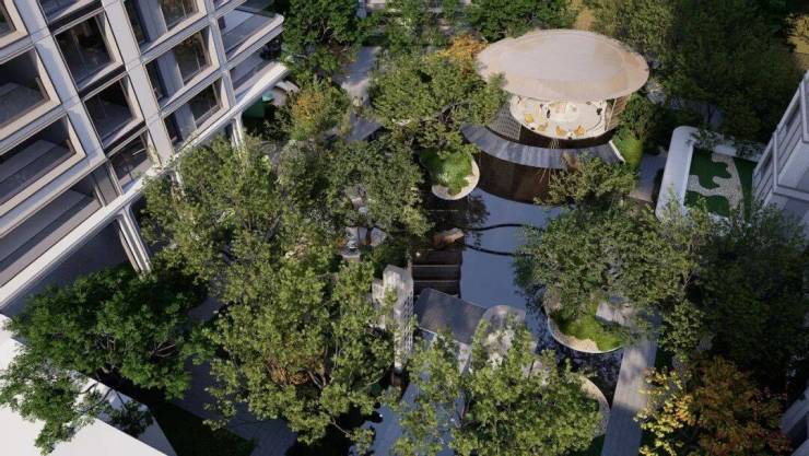 景观打造上,项目特邀园林景观专家团队-上海魏玛景观(曾操刀上海仁恒、成都麓湖等豪宅项目园林),从黄鹤楼、汉绣中提取灵感,打造五礼制归家礼仪,让建筑在山水中自由生长。